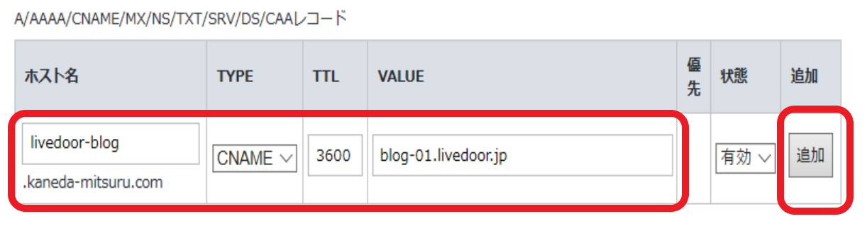 と入力し、追加をクリック (TTLはデフォルトのままでOKです)