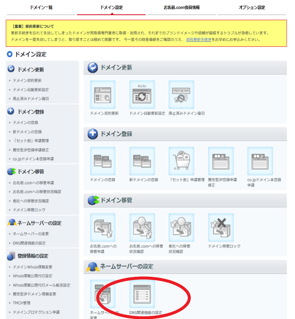●「お名前.com」の公式サイトにアクセスし、独自ドメインを取得したアカウントでログイン後、