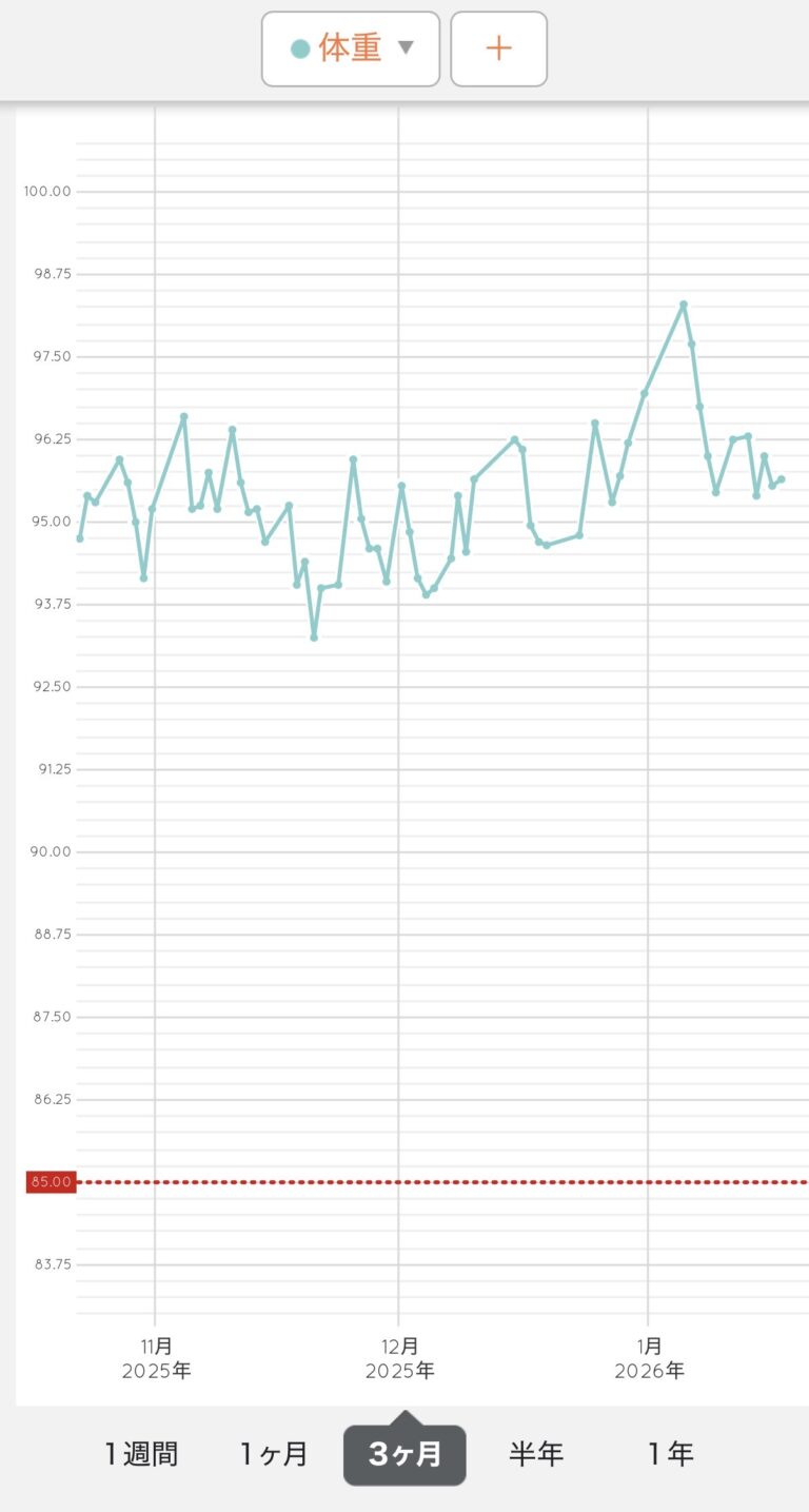 【ダイエット管理】あすけんアプリで見る2025年12月の状況(MAX99.35 → 現在95.65kg ▲3.7kg)