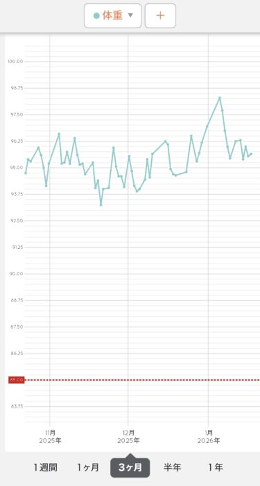 年末年始前の体重95.65kgまで何とか戻すことができました。