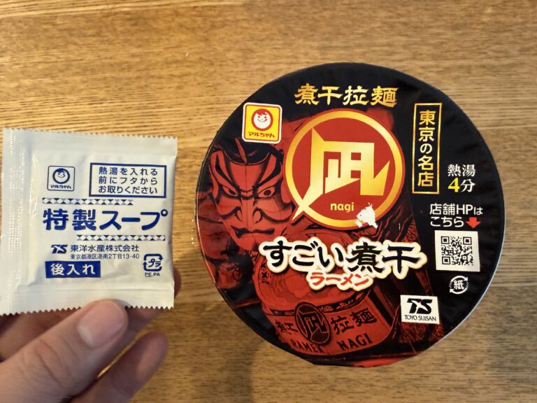 おはようございます! 金田満です。 本日はマルちゃんの新商品を見つけましたのでご紹介します。 📌本日の一杯 東京の名店 煮干拉麺 凪nagi すごい煮干ラーメン <マルちゃん> 🍽実食レビュー ✅スープ:煮干しがしっかり利いたスープ。 ✅麺 :マルちゃんのモチモチ4分麺。 ✅具材 :メンマやネギやチャーシューな […]